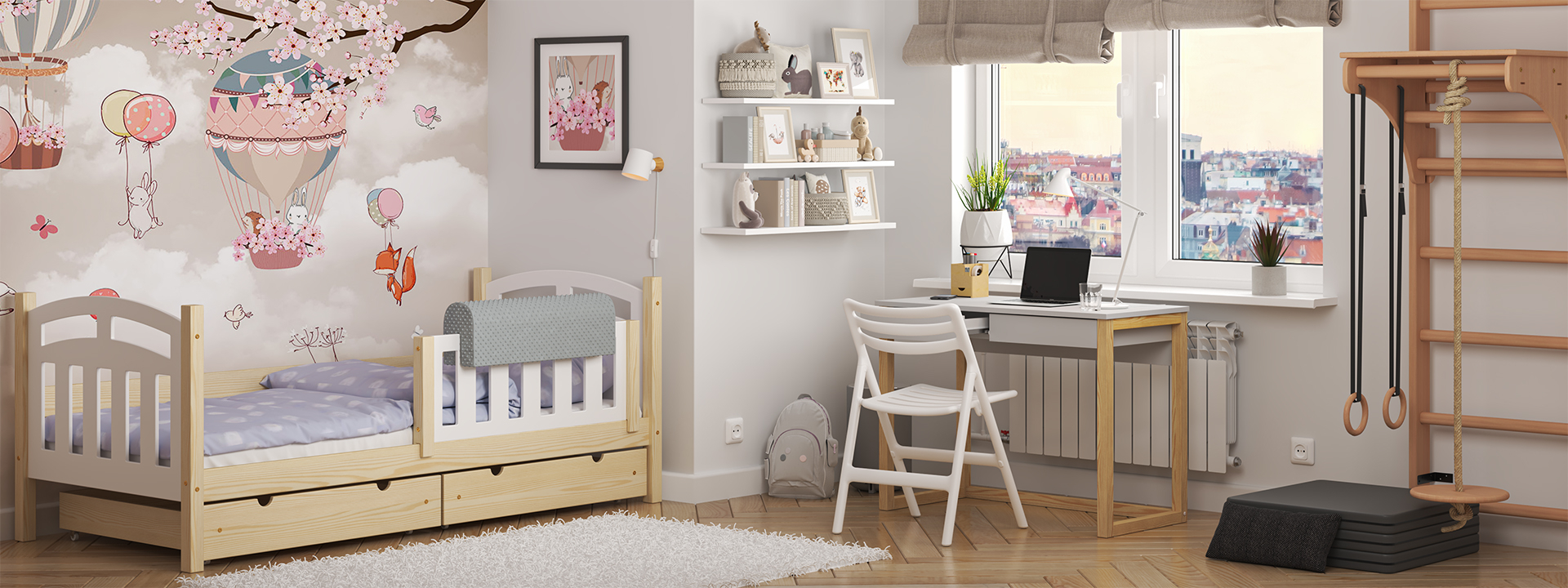Children grow before our eyes and before we know it, the baby becomes a toddler. Finally, it's time for your baby to go from a crib to a real bed and start living in their own room. Are you wondering how to furnish such a room? It is worth considering low models of beds, instead of those with a standard frame height.